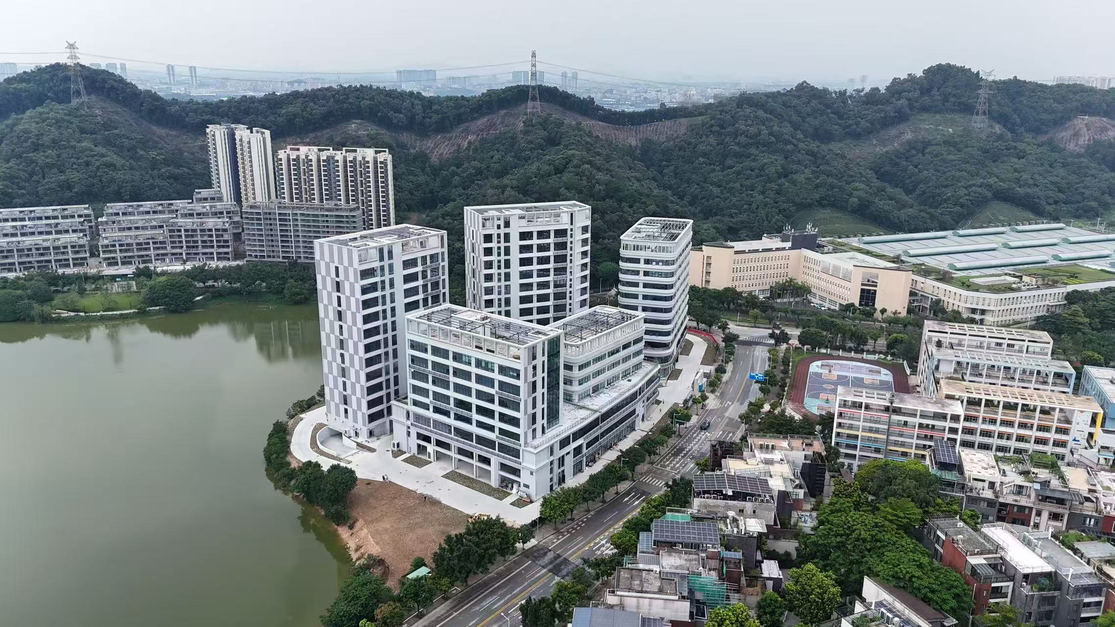 如果说恒峰商贸广场是存量的焕新,巨和智慧产业园则是增量的创造。这片曾堆积垃圾的荒地,如今依鹅卵水库而建,背靠浔峰山,白色建筑群科技感十足。项目投资3亿元,由沙凤经济联社与企业联合开发,突破集体土地租赁期瓶颈,打造了金沙街首个健康智慧产业园。