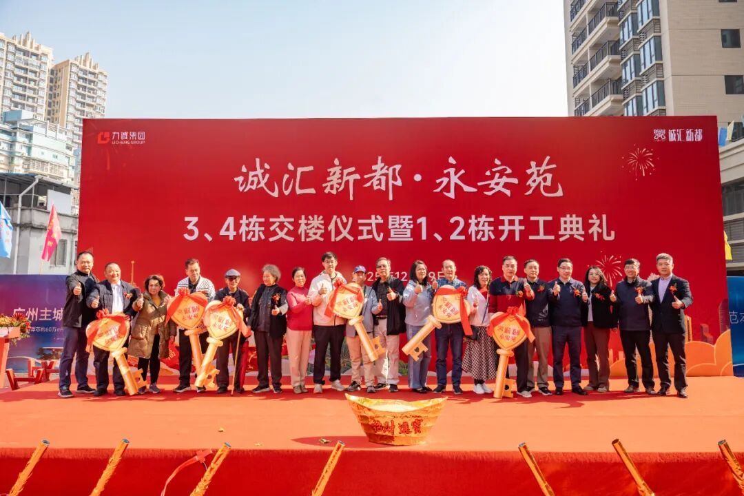 在见证交楼喜悦的同时,新的建设征程同步开启。活动现场,随着开工指令下达,诚汇新都•永安苑5-1、5-2栋安置房正式动工建设。这两栋建筑规划建设22层高层住宅,同样配备2层地下室,总建筑面积约3.3万平方米,建成后将为村民再添240套优质安置房。